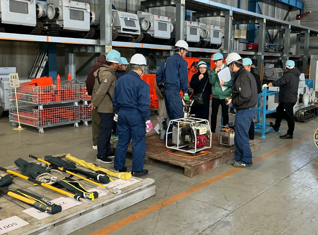 東電設計株式会社様のご案内により、ブータン電力公社の送電線技術者10名が当社つくば事業所を訪問され、日本の送電線工事用機材・工具をご覧いただきました。